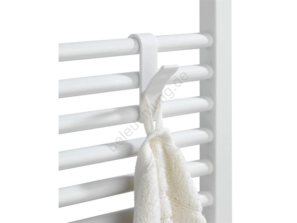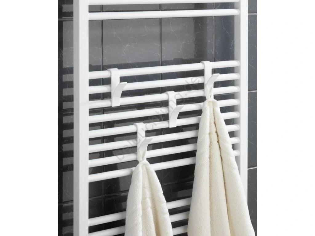 • Set mit 2 praktischen Haken für den Handtuchheizkörper.
