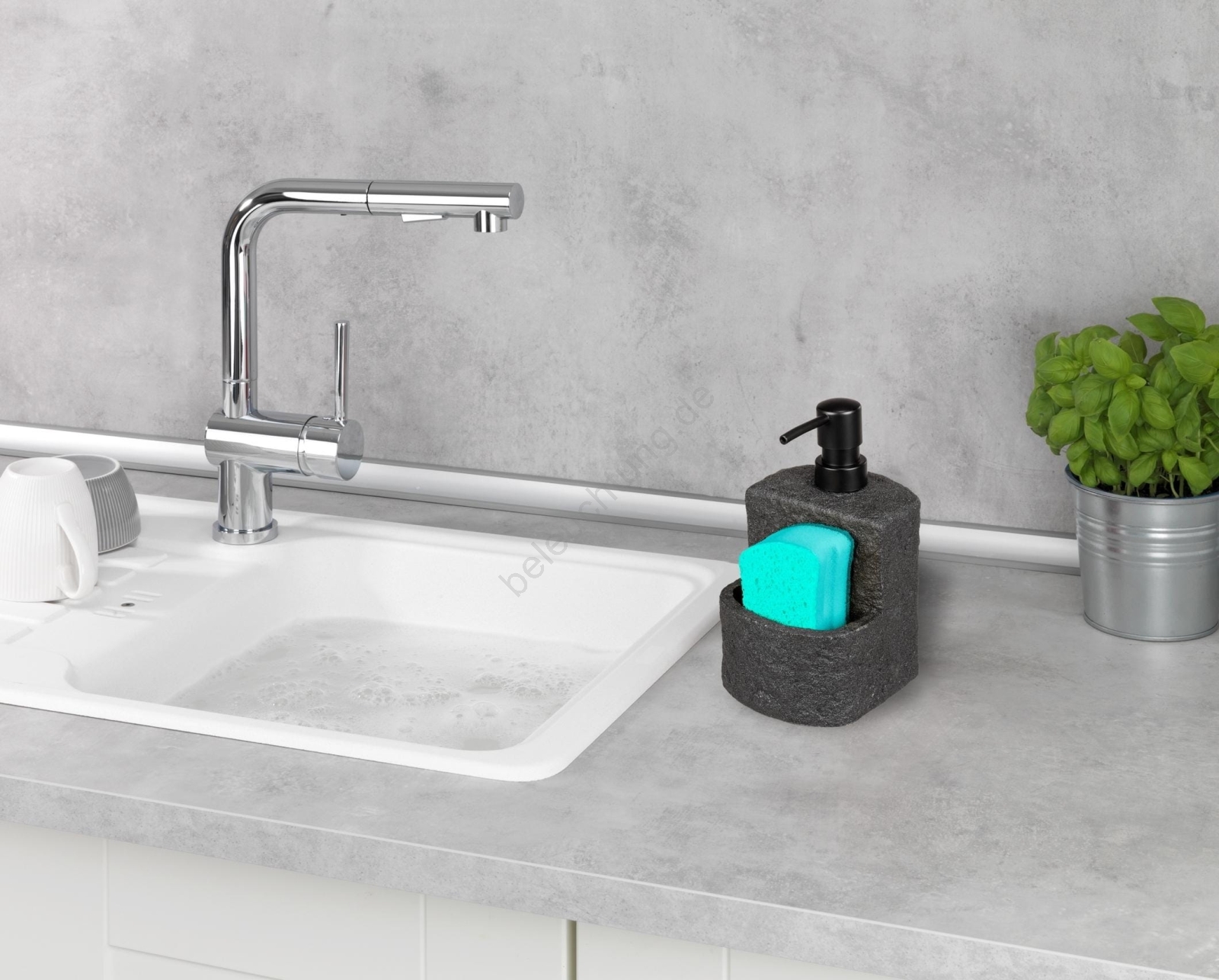 • Eleganter Spülmittelspender in moderner schwarzer Steinoptik.