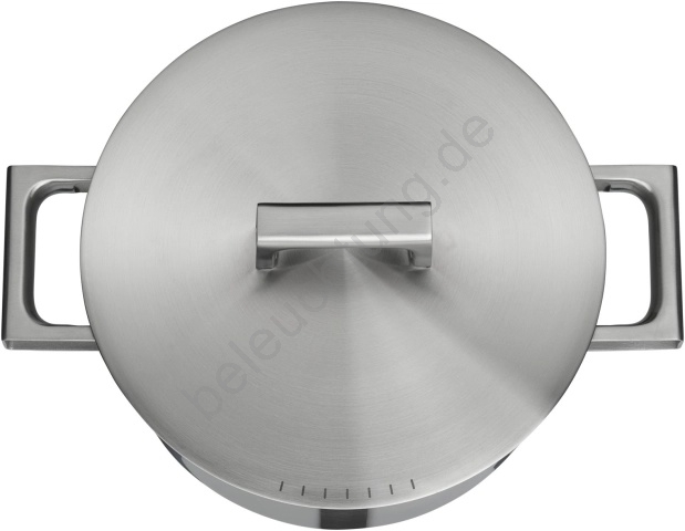 • Der Deckel besteht aus hochwertigem doppelwandigem Edelstahl und ist mit einem Cool+-Griff sowie einem versteckten Ventil zur Regulierung des Dampfabzugs ausgestattet.