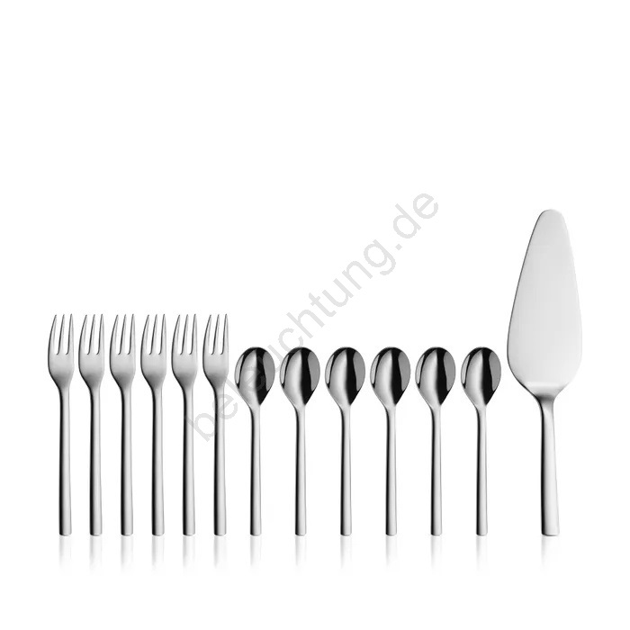 • Das Set enthält 6x Dessertgabeln, 6x Kaffee-/Teelöffel und 1x praktischen Tortenheber.