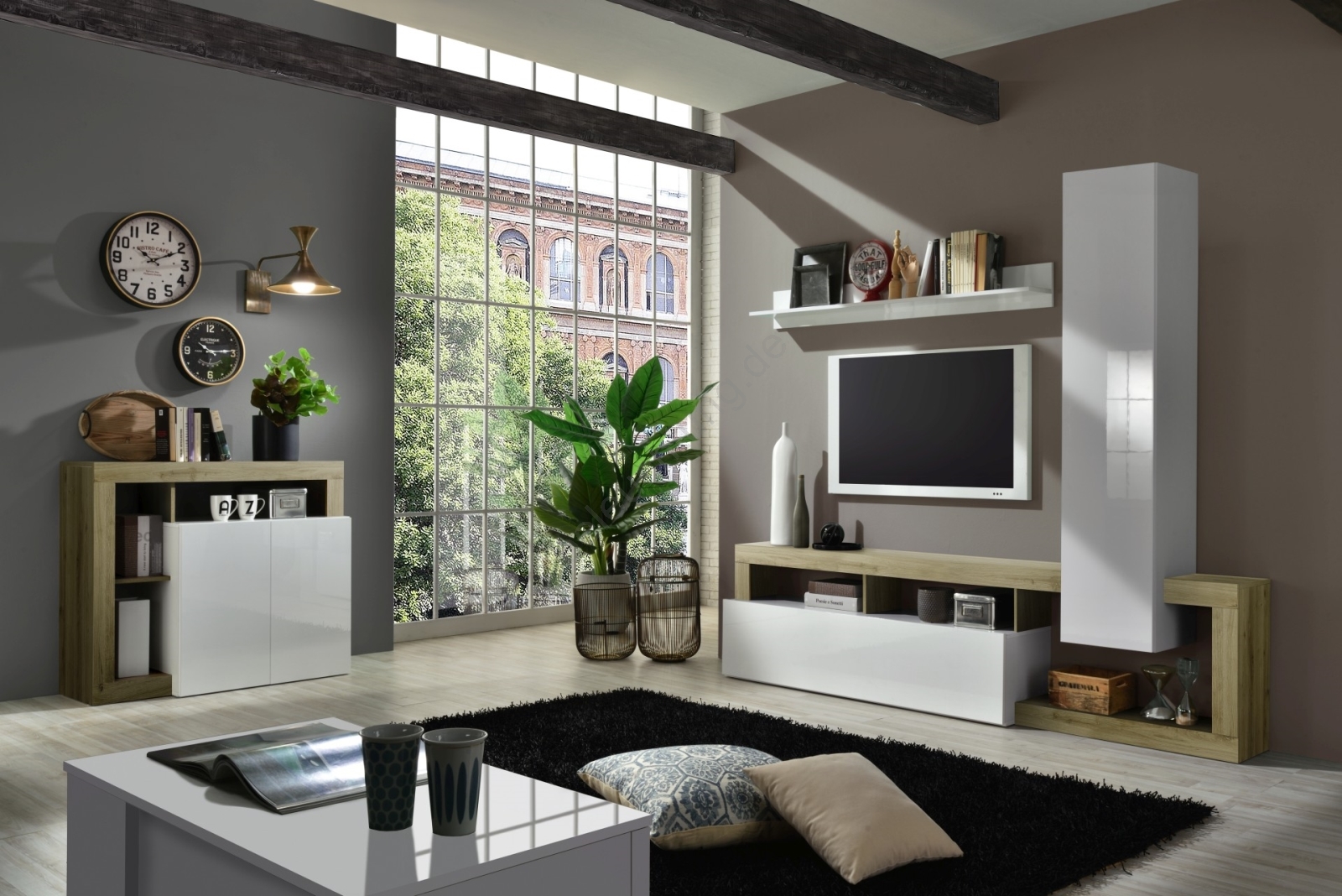 • Verleihen Sie Ihrem Zuhause Charme und Eleganz mit dieser Wohnwand, die klare Linien und ein zeitloses Design betont.