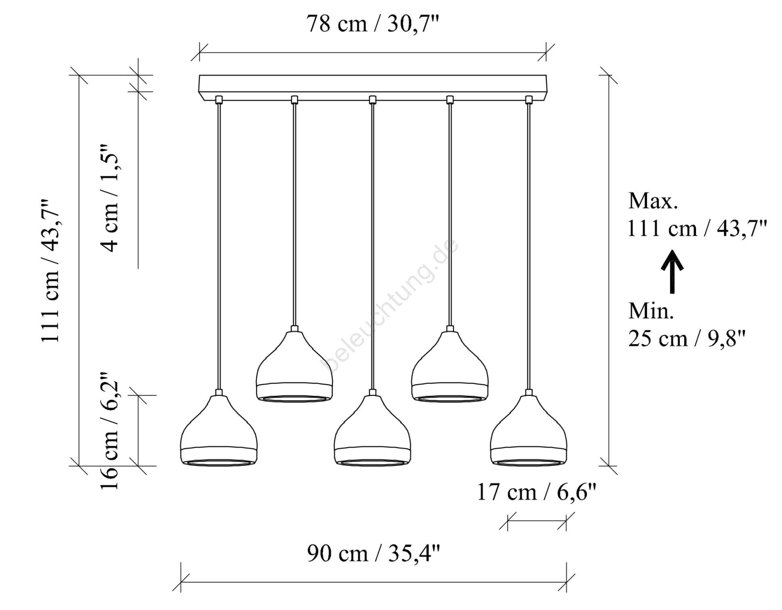 • Pendelleuchte an Kabel YILDO 5xE27/40W/230V weiß/gold