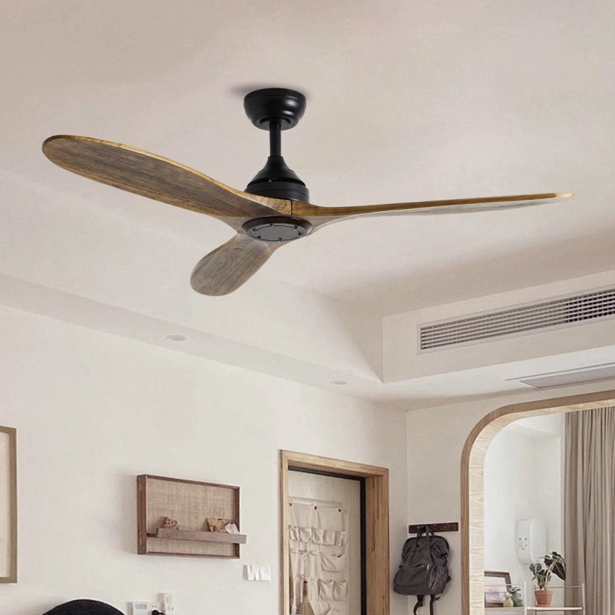 • ZEVENTI - Deckenventilator LIONI Wi‑Fi Tuya schwarz/Eiche + Fernbedienung