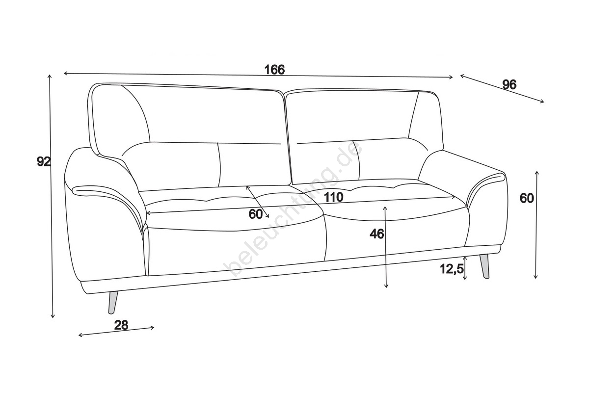 • Mit einer bequemen Sitzhöhe von 46 cm und einer Sitztiefe von 60 cm bietet es ergonomisches und entspanntes Sitzen.